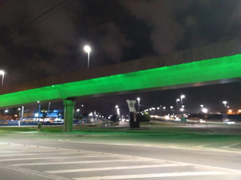 O Viaduto Paulo Gomes Barbosa, na Alemoa, ficou iluminado de verde neste sábado (22), Dia…