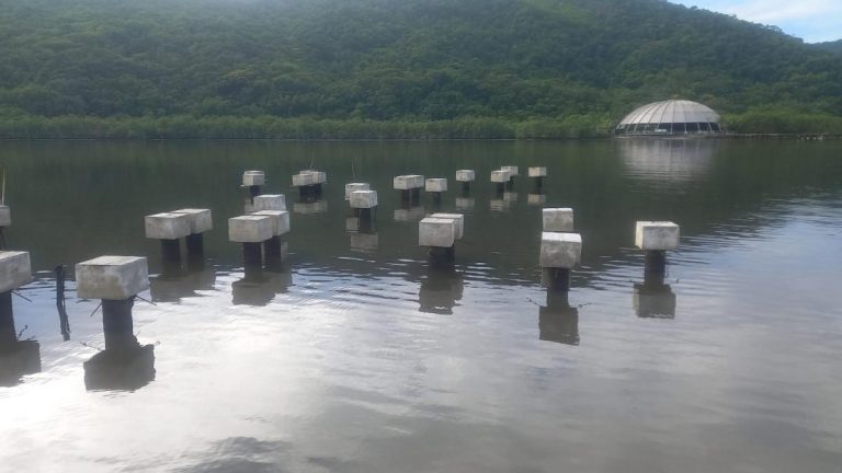 Obras do Portinho Caruara avançam com reservatório da fonte interativa concluído, estacas dos píeres prontas…