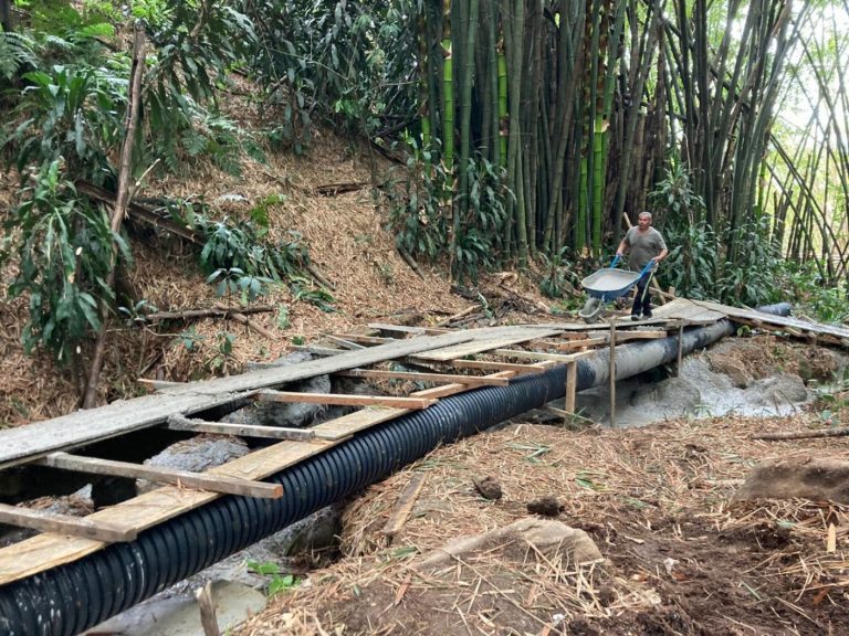 As obras visam garantir o correto direcionamento das águas pluviais na descida do Morro do…