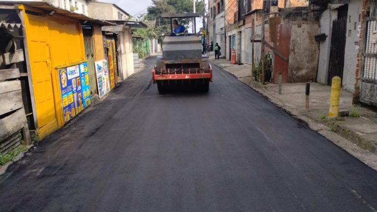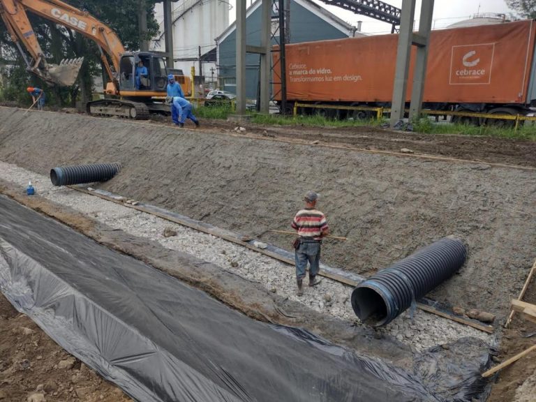 As obras de melhoria na Rua Augusto Scaraboto, na Alemoa, em Santos, seguem em ritmo…