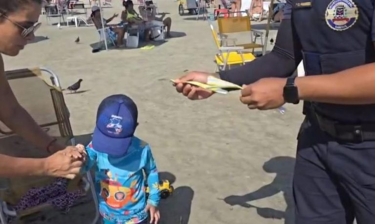 Prefeitura de Santos distribui mil pulseirinhas de identificação para crianças nas praias durante o Carnaval,…