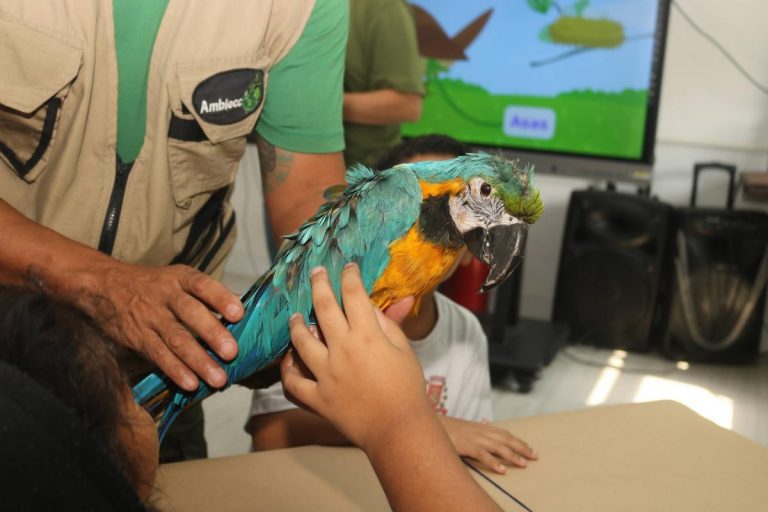 Alunos de escola municipal do Morro José Menino, em Santos, participaram de vivência educativa sobre a conservação de espécie ameaçada da Mata Atlântica.