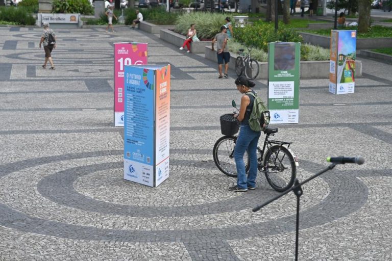 Exposição "O Futuro é Agora" chega ao Parque Tecnológico de Santos com 18 obras que interpretam os ODS da ONU e convidam à reflexão. Visitação gratuita até 14 de julho.