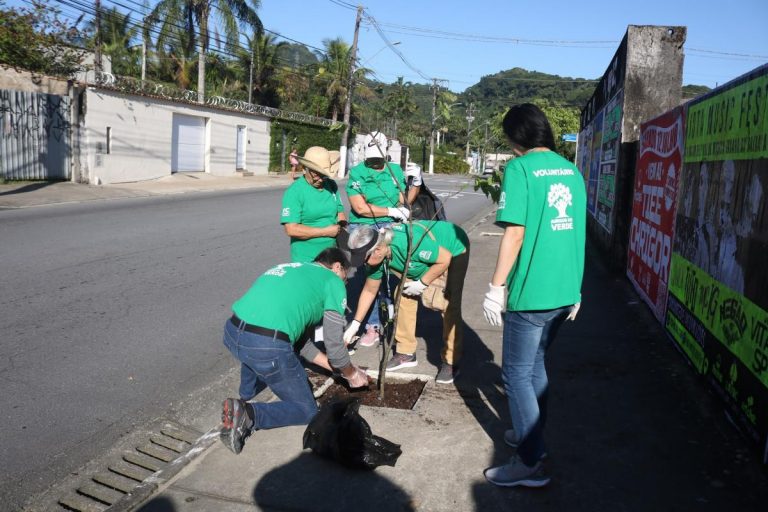 Programa Amigos do Verde realiza plantio de árvores em Santos, com participação de voluntários e ações de educação ambiental na Nova Cintra.