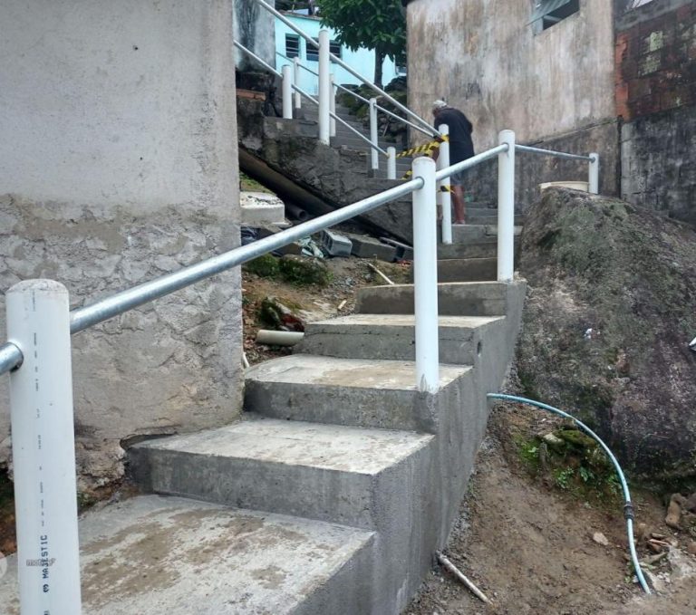 A escadaria do Morro Vila de Fátima em Santos será entregue revitalizada nesta sexta (30), com novos degraus, corrimão, pintura e drenagem para mais segurança e acessibilidade.